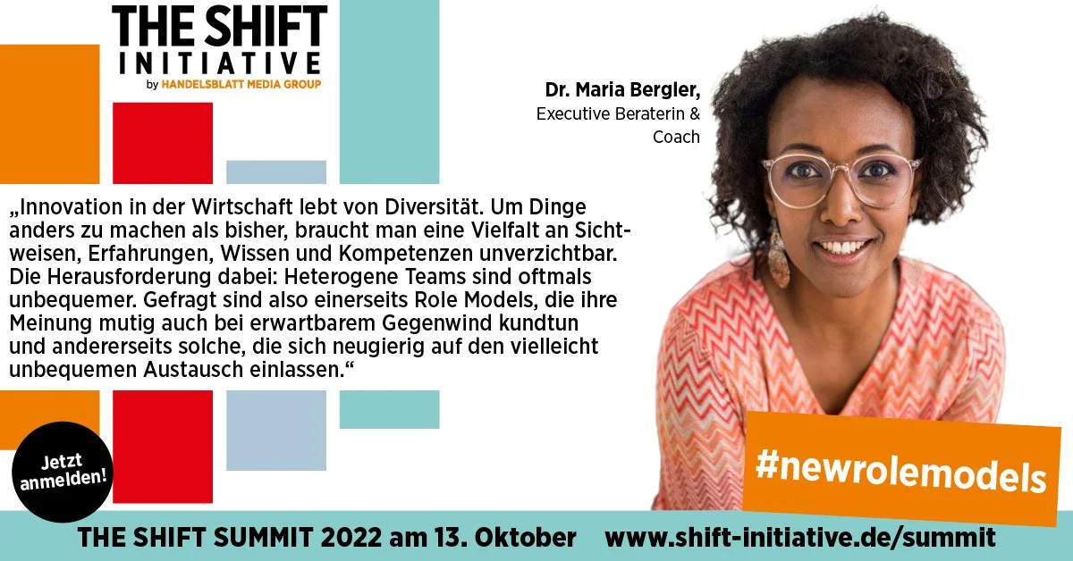 Am 13. Oktober durfte ich auf dem THE SHIFT SUMMIT 2022 des Handelsblatts “new rolemodels” kennenlernen und als Panelistin selbst Teil der Diskussion rund um Diversität und Wirtschaft sein. Gemeinsam mit Joana Breidenbach, Mitgründerin der Spendenplattform betterplace.org und Autorin, Oliver Maassen, Mitglied des Vorstands und CHRO bei TRUMPF und Julia Beil, Karriere-Redakteurin beim Handelsblatt sprechen wir über folgende Fragen: